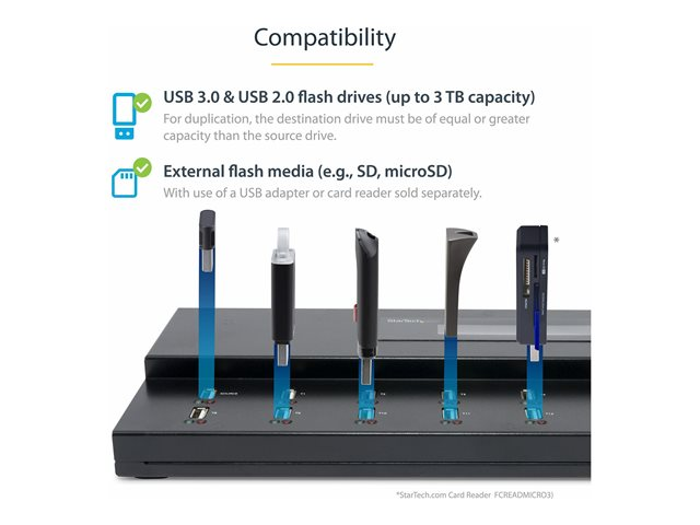 - Duplicate or erase up to 15 USB 3.0, USB 2.0 and USB 1.1 flash drives, without connecting to a host computer