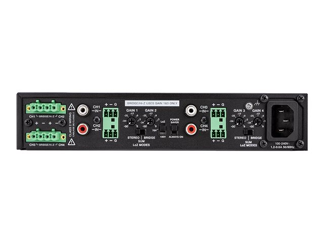- Standby feature instantly turns on amplifier when input sensing circuitry detects an audio signal