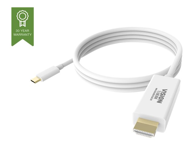The Vision USB-C 3.1 cable is a high-performance external video adapter designed to connect your USB-C equipped device to an HDMI display. With support for up to 3840 x 2160 resolution at 60 Hz, it delivers a smooth and vibrant video experience, ideal for professional presentations, streaming, and gaming. The cable features a male USB-C connector and a male HDMI connector, providing a seamless link between devices without the need for additional adapters. Its gold plated connectors not only enhance durability but also ensure a reliable connection and superior signal quality. Compliant with FCC standards, this 2 m cable offers both flexibility and compliance with regulatory standards, making it a smart choice for a wide range of applications.