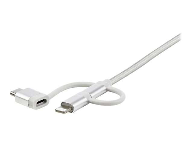 3.3 ft / 1m - Lightning / USB-C / Micro-USB - Braided - MFi Certified - USB 2.0 - 3 in 1 Charging (LTCUB1MGR) - USB-kabel - USB (hann) til Micro-USB type B, Lightning, USB-C (hann) - 1 m - sølv