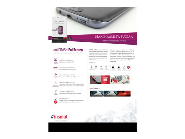 Produktbeskrivelse Insmat AntiCrash - skjermbeskyttelse for mobiltelefon Produkttype Skjermbeskyttelse - film Beregnet for Mobiltelefon Beskyttelse Støtsikker, støvbestandig, ripebestandig, smussmotstandig Pakkeinnhold Våt renseklut, tørr renseklut, spatel Produktmateriale Film (3H) Farge Gjennomsiktig Designet for Apple iPhone 12 mini -