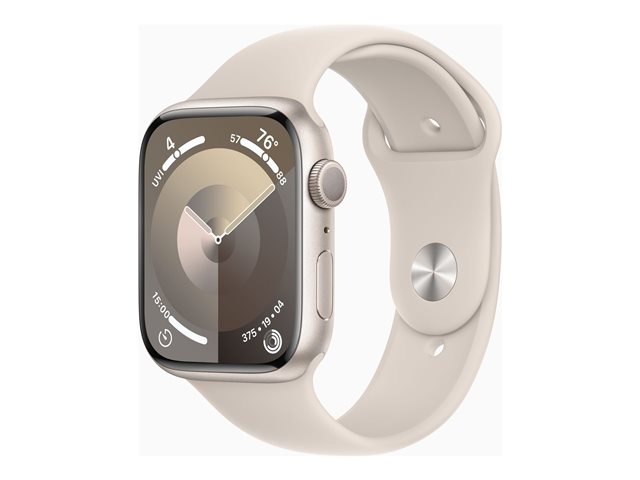 45 mm - stjernelysaluminium - smartklokke med sportsbånd - fluorelastomer - stjernelys - båndbredde: M/L - 64 GB - Wi-Fi, Bluetooth, UWB - 38.7 g