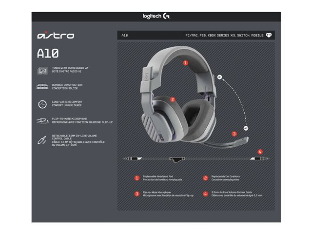 A10 Gen 2 gir nøye balansert high-fidelity-lyd med spesialtilpassete 32 mm ASTRO Audio dynamiske drivere for en oppslukende opplevelse. Den avanserte integrerte boom-mikrofonen kan flippes opp for å settes på mute for privatliv eller ned for krystallklare samtaler via en 6.0 millimeters mikrofon.