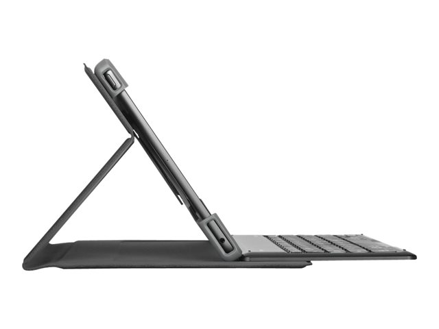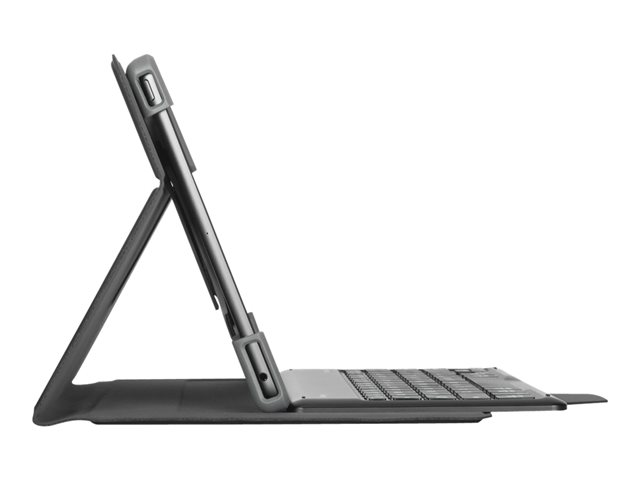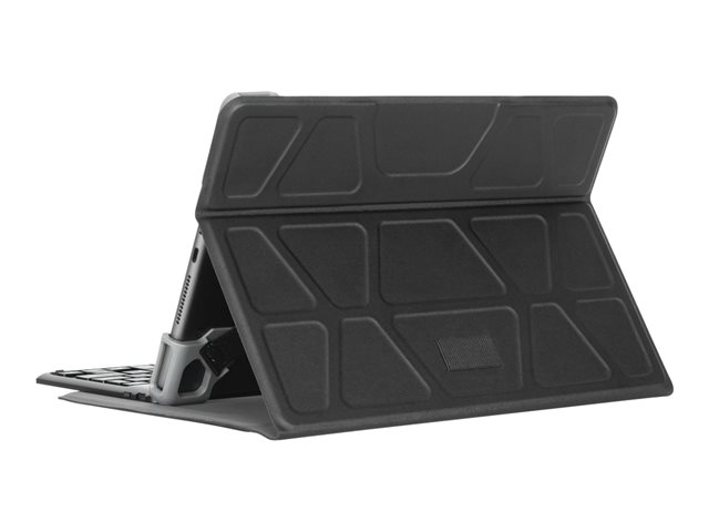 - Flexible cradle with reinforced corners secures and protects tablet