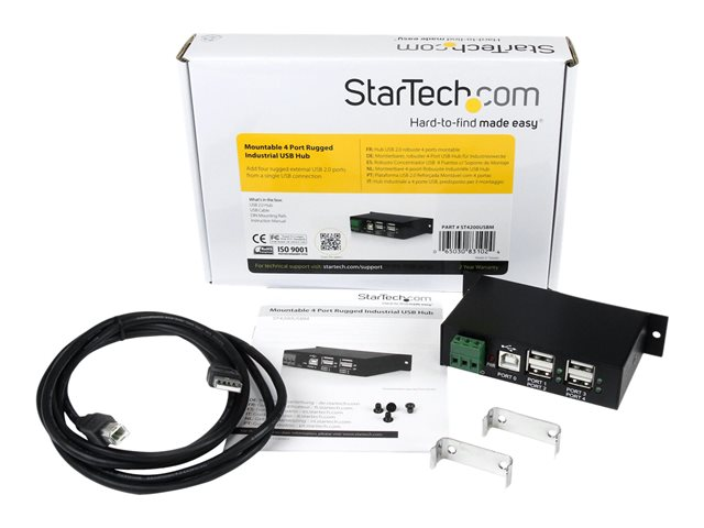4 Port Rugged Industrial USB 2.0 Hub - Hub - 4 x USB 2.0 - DIN-skinnemonterbar - DC-strøm - for P/N: ITB20D3250, MSDREADU2OTG, USB2HAB15, USB2HAB30AC, USB2HAB50AC, USB2HABM1, USB2HABM6RA