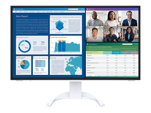 Ergonomien er i høysetet, med FlexStand som gjør det enkelt å justere høyden, svinge, dreie og vippe, noe som sikrer optimale visningsvinkler og komfort under lange arbeidsøkter. Tilkoblingsmulighetene er sømløse takket være den innebygde USB 3.2 Gen 1/USB-C-huben og flere inngangsalternativer, inkludert HDMI og DisplayPort.