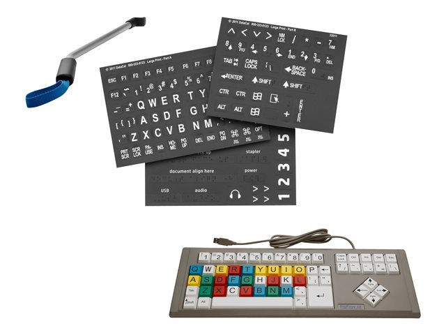 The HP Accessibility Kit is designed to remove barriers between users and their Enterprise MFPs and scanners for a more accessible experience for everyone, everywhere. The three-in-one solution combines customized Braille and tactile adhesives, an access handle, and the BigKeys LX keyboard so users can work with ease and to their full potential.