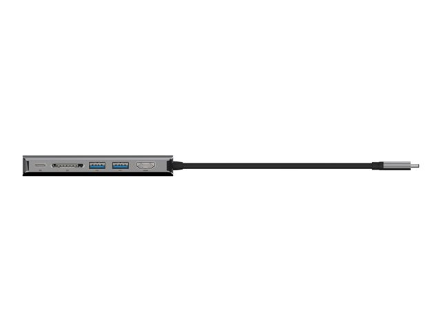 • Expands USB Type-C port into an HDMI port, 2 USB Type-A 3.0 BC1.2 ports, Gigabit Ethernet port, SD card reader, and USB Type-C PD port