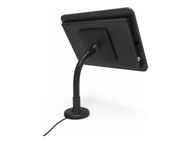 Our Flex Arm stand can be mounted on any flat surface, counter-top or to a wall for use as a secure interactive display or kiosk with a bendable arm that is great for corners and where counter space is limited. Limited cable management is available through the mount and arm of the stand and there is an adhesive no-screw base add-on available.
