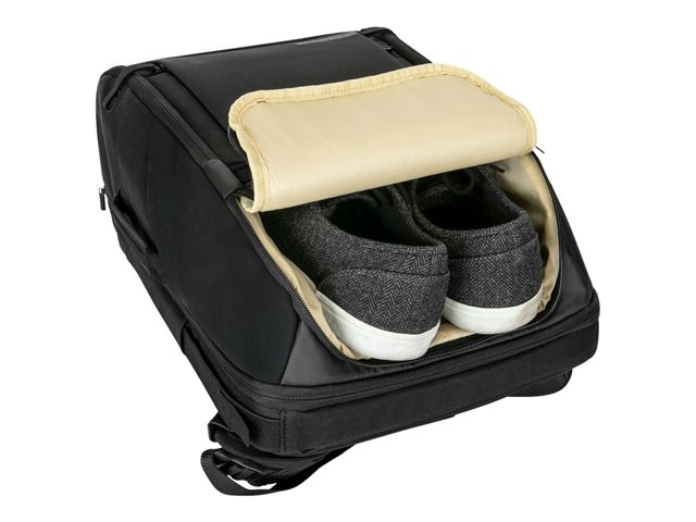 Designed to make the most of your day, this backpack offers several pockets to store your accessories and other essentials, including top, side, and hidden lumbar pockets for quick access. The pack also offers a top- and front-loading feature, an external footwear compartment, front and side grab handles, a trolley strap so you can secure it to your rolling luggage, and a stretchable loop for your jacket.