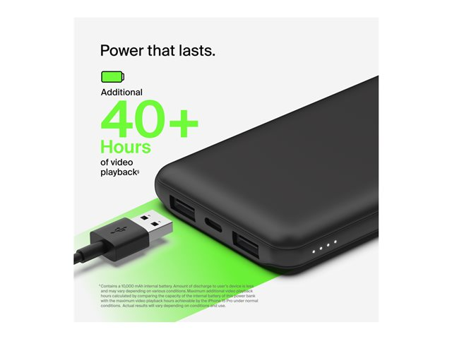 • 10,000 mAh provides 40* extra hours of battery life for your smartphone