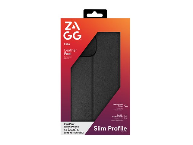 Zagg - Lommebok for mobiltelefon - fauxlær - svart - for Apple iPhone 13, 14, 15 702314821