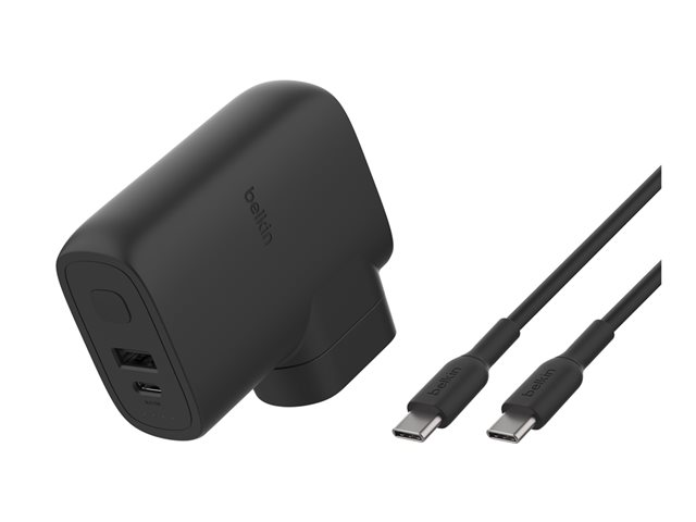 • Dual ports (1x USB-C and 1x USB-A) support two devices charging simultaneously